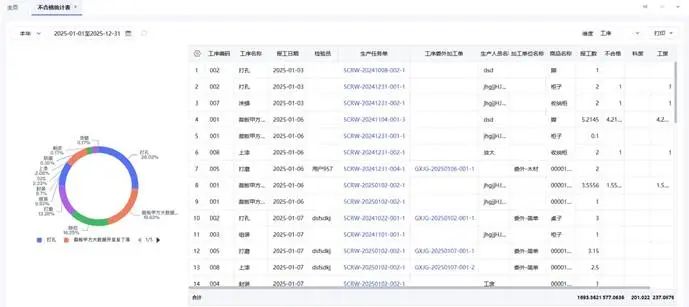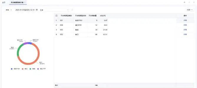 ⚫ 新增工序检验记录、工序返工单统计表/明细表、不合格统计表、不合格原因统计表。