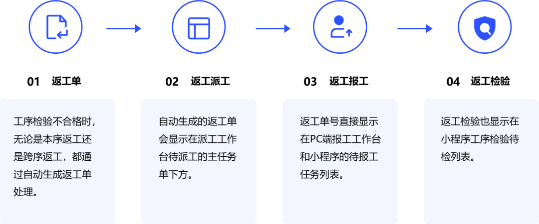 ⚫ 工序委外的工序检验也是在小程序上进行,但是不支持返工。