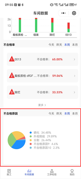 ⚫ 系统中的良品数、不良品数统一修改为合格、返工、料废、工废。不合格区分为:返工、料废、工废。